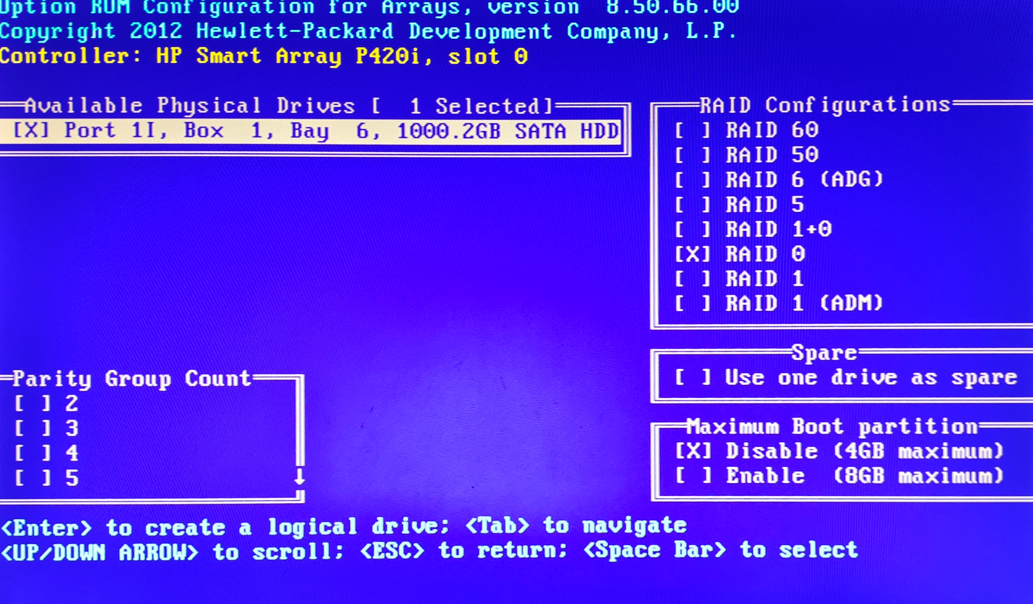 6.按 回车 进入Create Logical Drive(创建逻辑驱动,通常是新加硬盘在这里添加到RAID 0