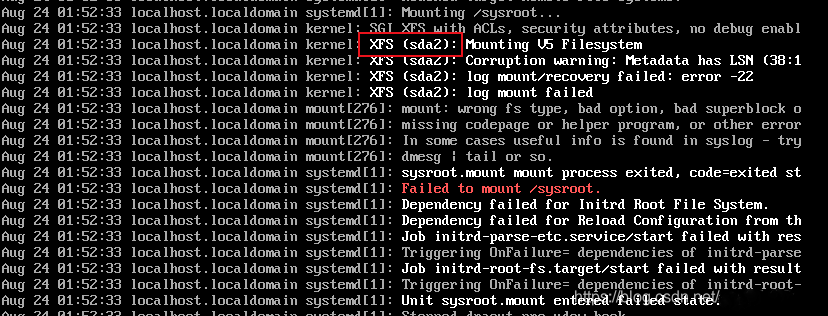 输入:xfs_repair -v -L /dev/sda2